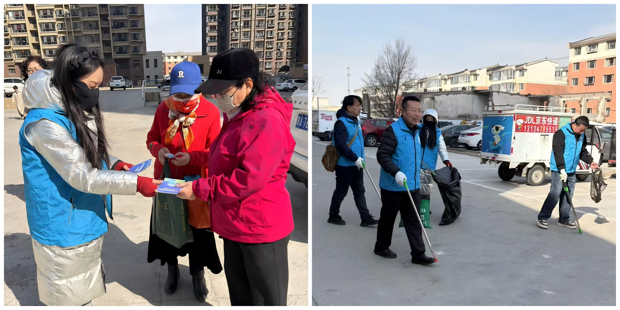 宣传热度未减,劳动热情已燃。随后,身着蓝马甲的中心支部党员们与社区群众、网格员自然组成一支志愿服务队,大家分工协作,手持扫帚、铲刀、垃圾钳等工具,投身到“清洁家园”行动中。重点对社区主干道、绿化带内的烟头、纸屑、枯枝落叶进行了地毯式清理,不放过任何一处卫生死角;随后深入楼道,对墙面、楼道口乱贴乱画的小广告进行仔细铲除,并对乱堆乱放的杂物进行了规范整理。经过一上午的辛勤劳动,社区环境变得更加干净整洁,楼道面貌焕然一新,赢得了社区居民的连连称赞。同时,大家在劳动中交流思想、增进感情,在互帮互助中深化民族团结情谊,共同营造民族团结一家亲的浓厚氛围。